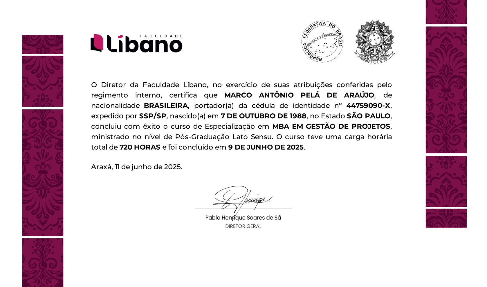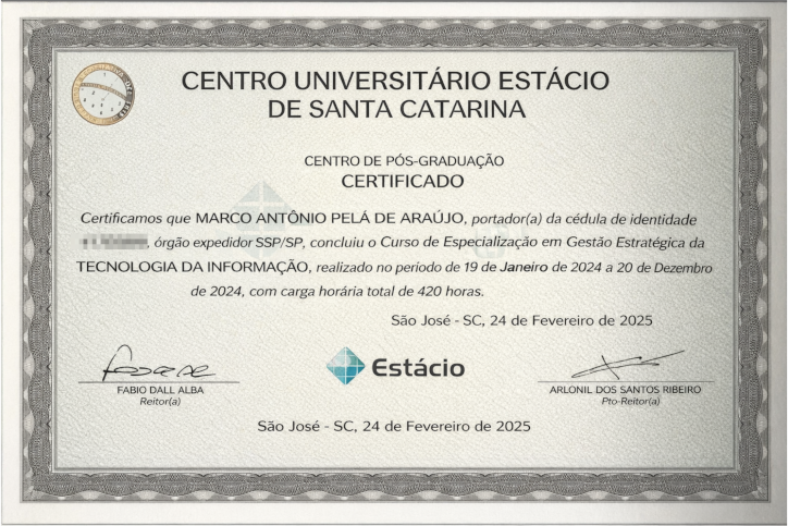 Marco Antônio Pelá de Araújo, - Marco Mapa como apelido de infância - é Bacharel em Ciências Contábeis, Pós-graduado em Gestão Estratégica da Tecnologia da Informação, MBA em Gestão de Projetos, MBA em Administração de Empresas e Pós-graduado em Inteligência Artificial e Ciência de Dados.