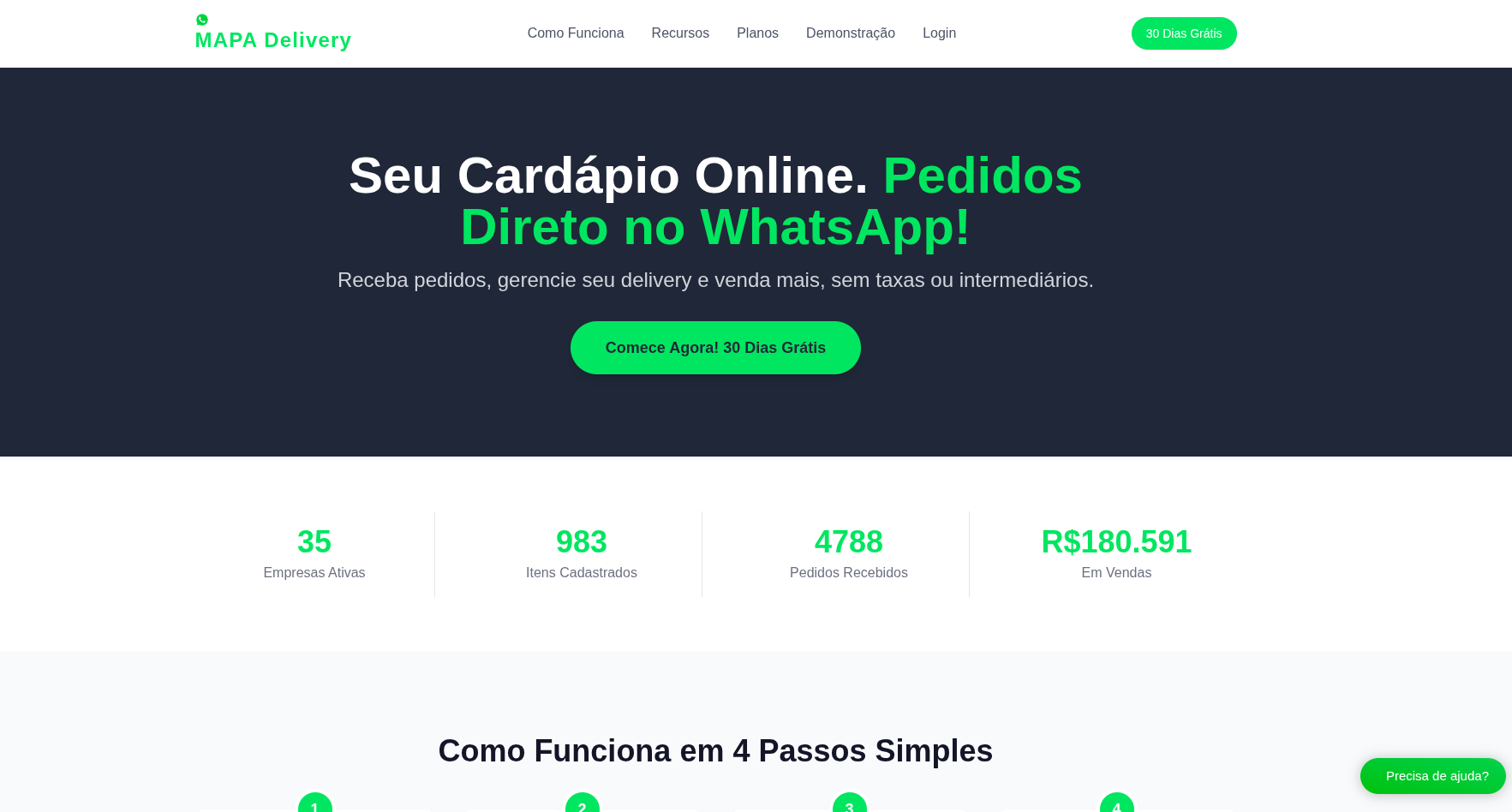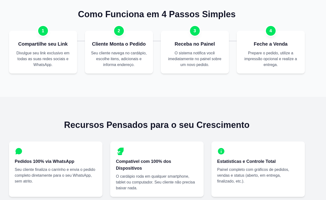 Cardápio Online. Pedidos Direto no WhatsApp! Receba pedidos, gerencie seu delivery e venda mais, sem taxas ou intermediários. Mais de 40 estabelecimentos e 200 mil reais em faturamento de pedidos nos primeiros meses de lançamento.